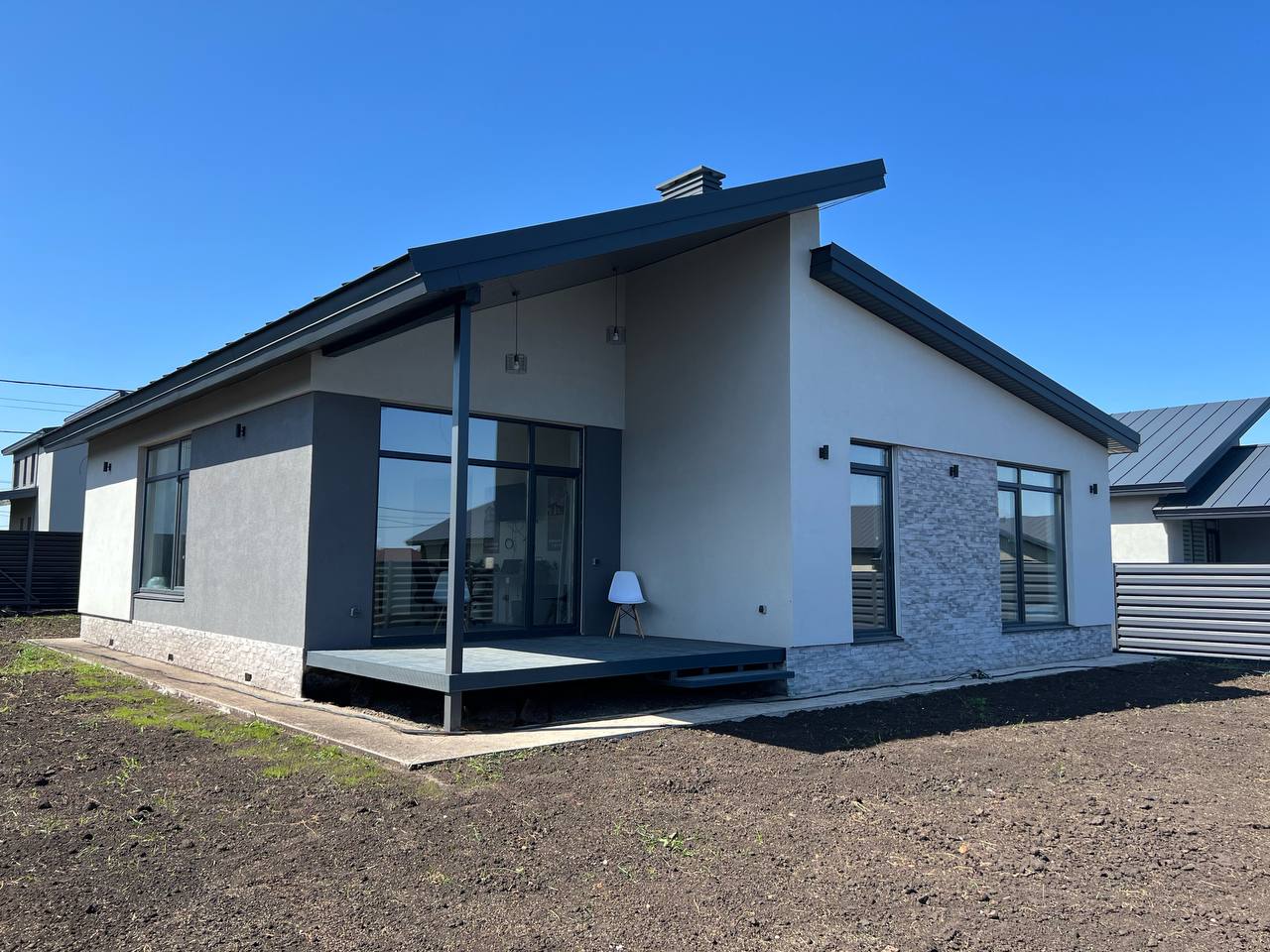 Дом капитальный, конструктивном предусмотрено: плитный фундамент, армированный каркас, заполнение стен газоблоком или ракушняком, внутренние перегородки, утеплённая односкатная крыша, металлопластиковые окна, утеплённый фасад, входная дверь.